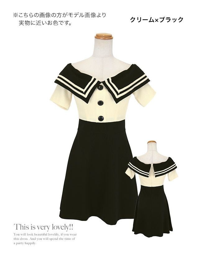 制服チックなガーリーデザイン♪ [韓国ドレス] ミニドレス 襟付き セーラーカラー オフショルダー バイカラー Aライン キャバドレス (緩苺着用) [tk-mdk5011]