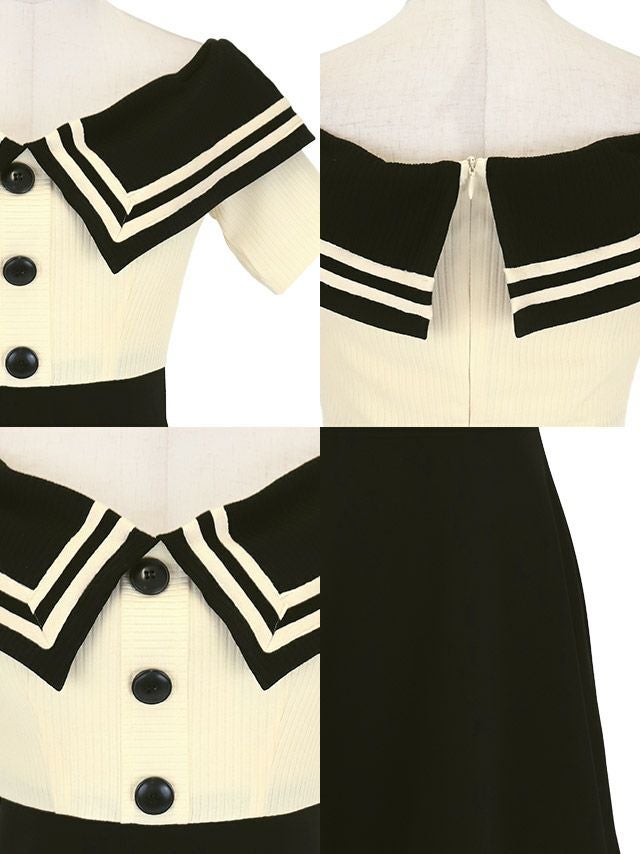 韓国ドレス ミニドレス 襟付き セーラーカラー オフショルダー バイカラー Aライン キャバドレスのディティール1 韓国ドレス ミニドレス 襟付き セーラーカラー オフショルダー バイカラー Aライン キャバドレスのディティール2
