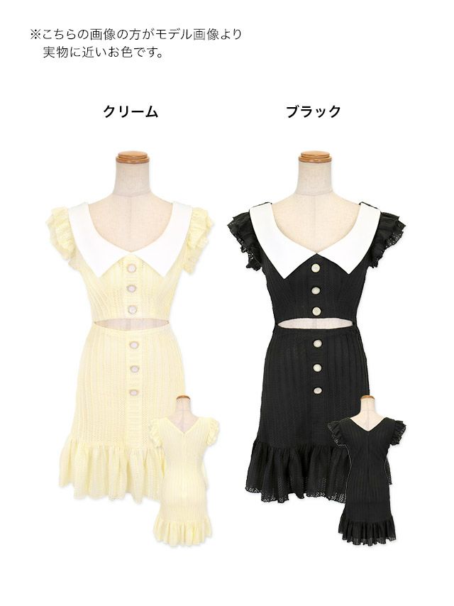 [韓国ドレス] ミニドレス コットンレース ワンピース 襟付き フリル袖 ウエストカット 裾フリル ノースリーブ ブラジャーのまま Aライン 黒 キャバドレスのカラーバリエーション