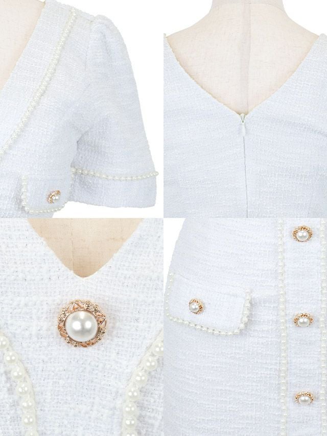 韓国ドレス ミニドレス ストレッチニット Vネック パールボタン 半袖 タイト キャバドレスのディティール1 韓国ドレス ミニドレス ストレッチニット Vネック パールボタン 半袖 タイト キャバドレスのディティール2