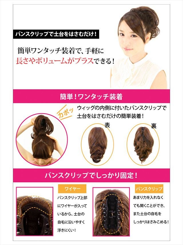 挟むだけで簡単に装着ができる万能アイテム♪ カールポニーテールウィッグクリップ (全4カラー)