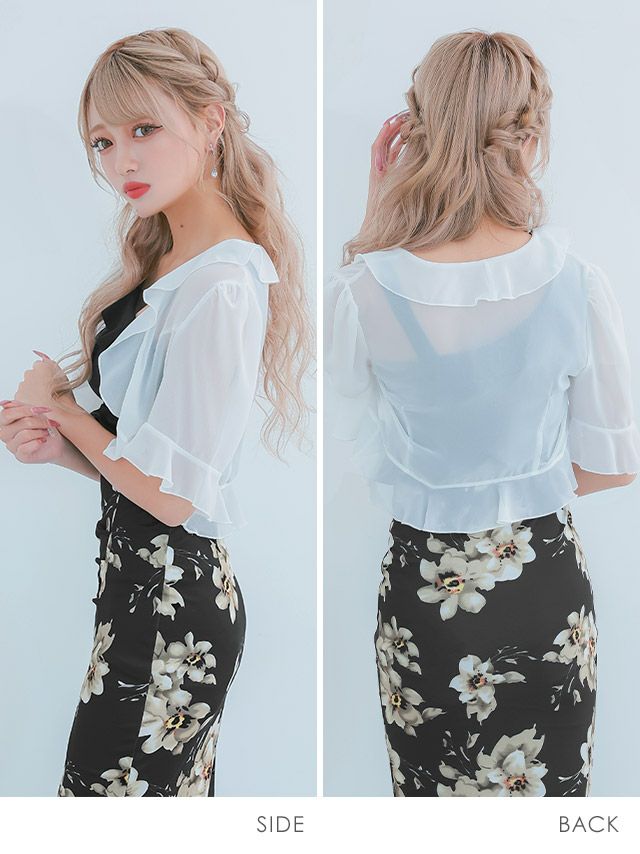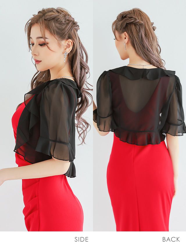 シフォン素材フリル半袖ボレロのサイドバック画像