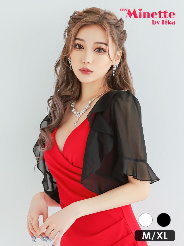 どんなドレスにも合う半袖ボレロ♪ シフォン素材フリル半袖ボレロ