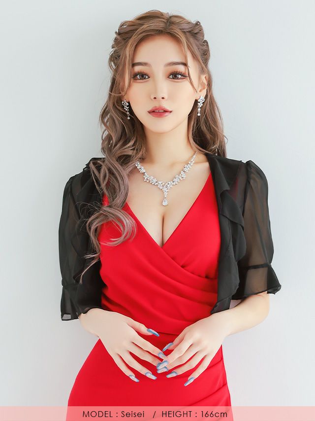 4. シフォン素材フリル半袖ボレロ