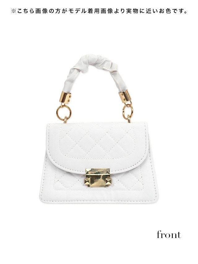 ゴールドの金具で高級感UP♪ キルティング風2Wayハンドミニバッグ
