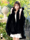 [SALE] ボリュームフェイクファーデザインフード付き大判ショール (せいせい/羽織り着用)