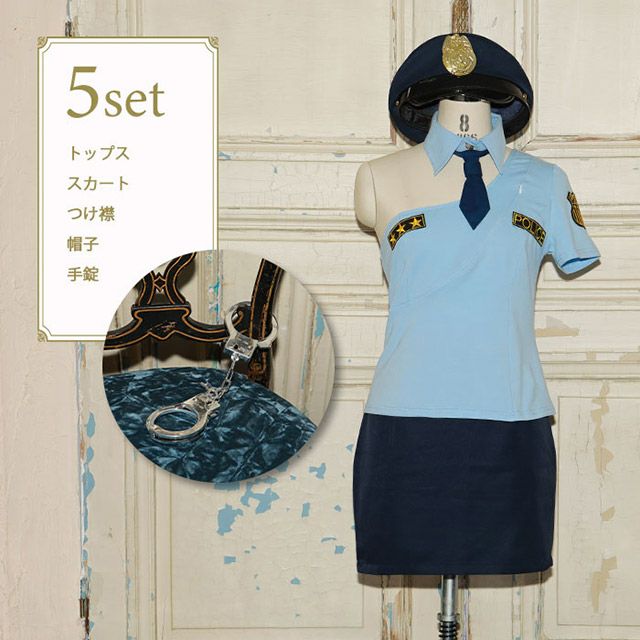 5. [コスプレ] 【しぴたん×BODYLINE】セクシーカッティングポリス [5点セット] (トップス/スカート/つけ襟/帽子/手錠)