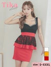 5. デコルテビジューウエストリボンレースペプラム切替ノースリーブタイトミニドレス (Sサイズ~XXXLサイズ) (聖菜/キャバドレス着用)