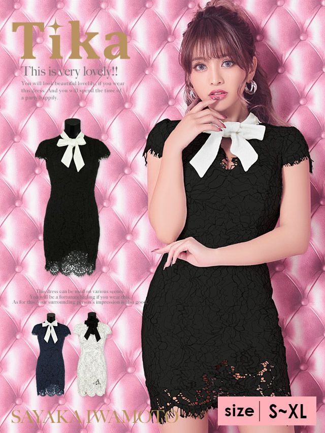 3. 総レース半袖スカラップネックリボンタイトミニドレス (Sサイズ~XLサイズ) (聖菜/キャバドレス着用)
