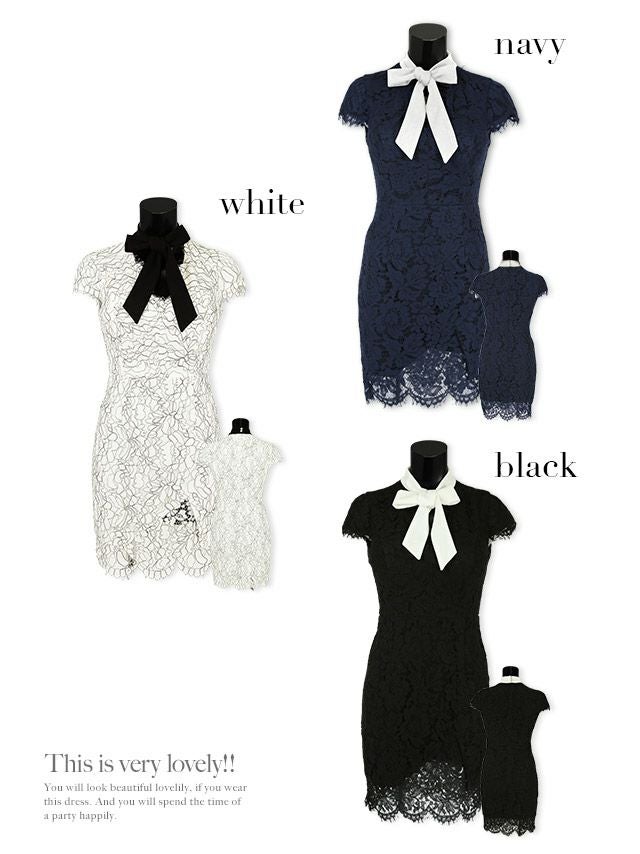 総レースネックリボン半袖スカラップタイトミニドレスのカラーバリエーション
