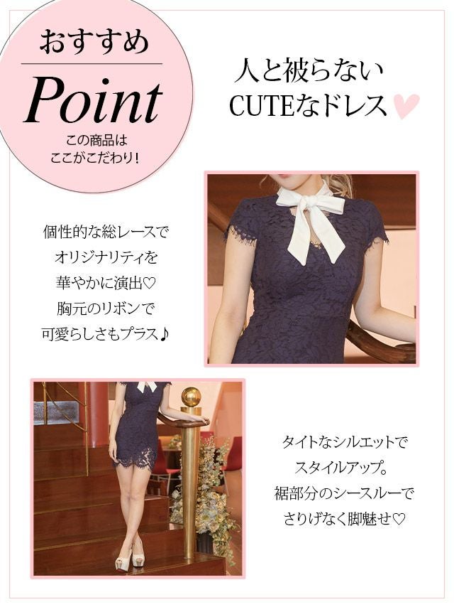 総レースネックリボン半袖スカラップタイトミニドレスの商品特徴