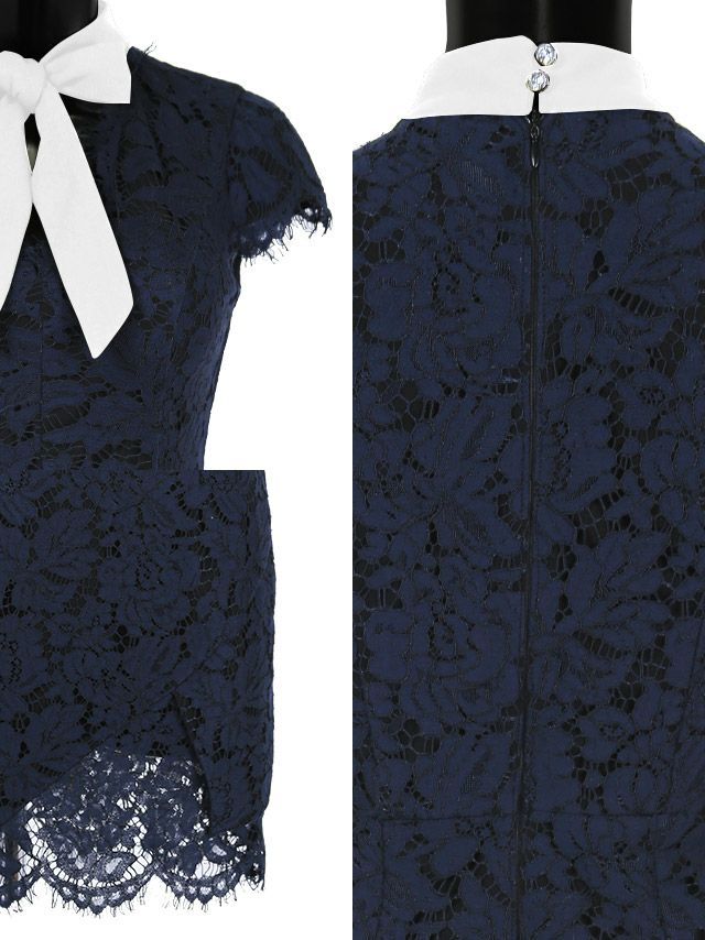 総レースネックリボン半袖スカラップタイトミニドレスの商品詳細1