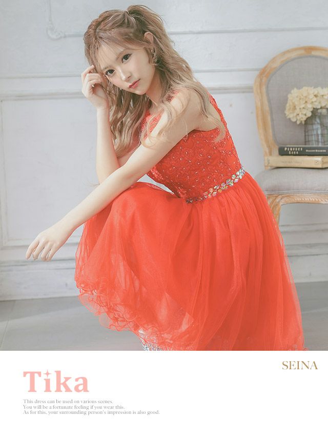 キャバドレス ミニ丈 大きいサイズ Aライン イベント Tika ティカ ノースリーブフラワー刺繍バックハートカットアウトウエストビジューラインボリュームチュールフレアミニドレス