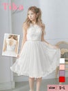 ノースリーブフラワー刺繍バックハートカットアウトウエストビジューラインボリュームチュールフレアミニドレスのカラーバリエーション