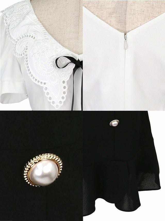 刺繍レース襟ガーリースタイル半袖フレアミニドレスの商品詳細2