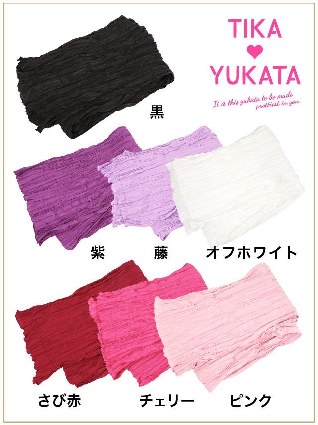 5. [浴衣小物] しわ兵児帯 (オフホワイト/紫/チェリー/藤/ピンク/さび赤/黒)