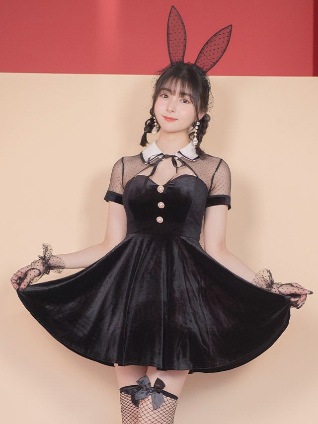 ハロウィンコスプレ ベロア体型カバードットシアーモノトーンガーリーバニーのイメージ画像1