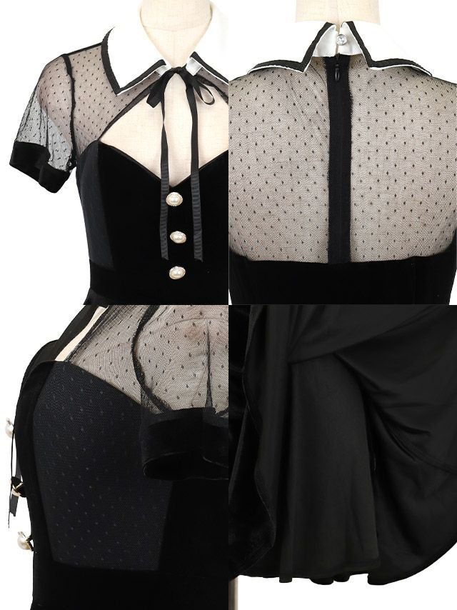 シアーな透け感のあるドット柄&ベロアが