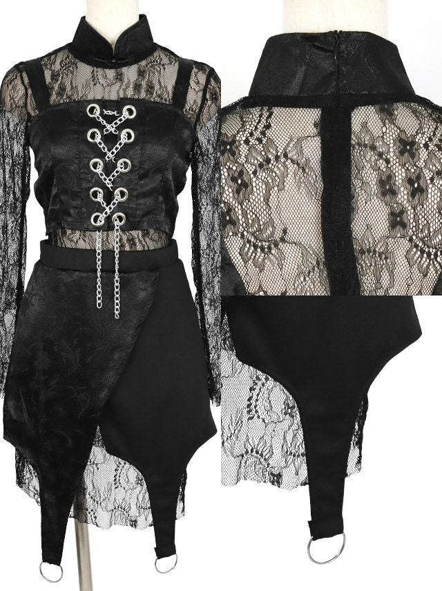 ビスチェに飾ったチェーンのレースアップが