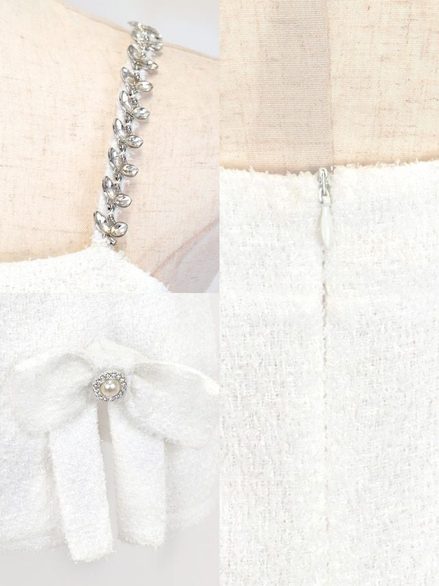 4. [SALE] チェーン キャミソール ツイード ラメリボン ワンカラー ガーリー フレアミニドレス (Sサイズ~Lサイズ) (重川茉弥/キャバドレス着用)