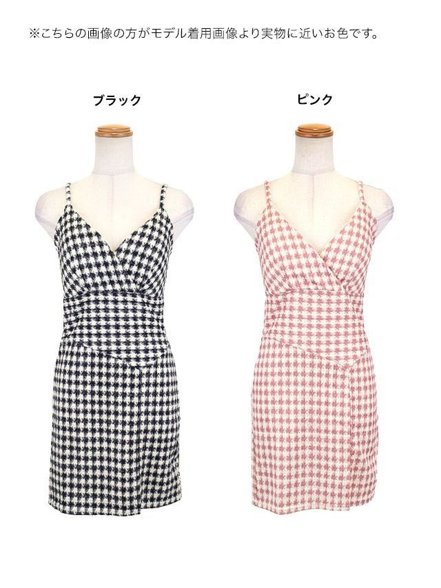 ミニドレス プチプラ ツイード ストレッチ セクシー 谷間 キャミソール 新人 背中魅せ 低身長 黒 安い タイト キャバドレスのカラバリ画像