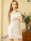 胸元リボンで大人可愛い☆ SALE [Angel-R/エンジェルアール] 高級ワンショルダーフロントリボンチェック柄スパンコールツイードフレアミニドレス