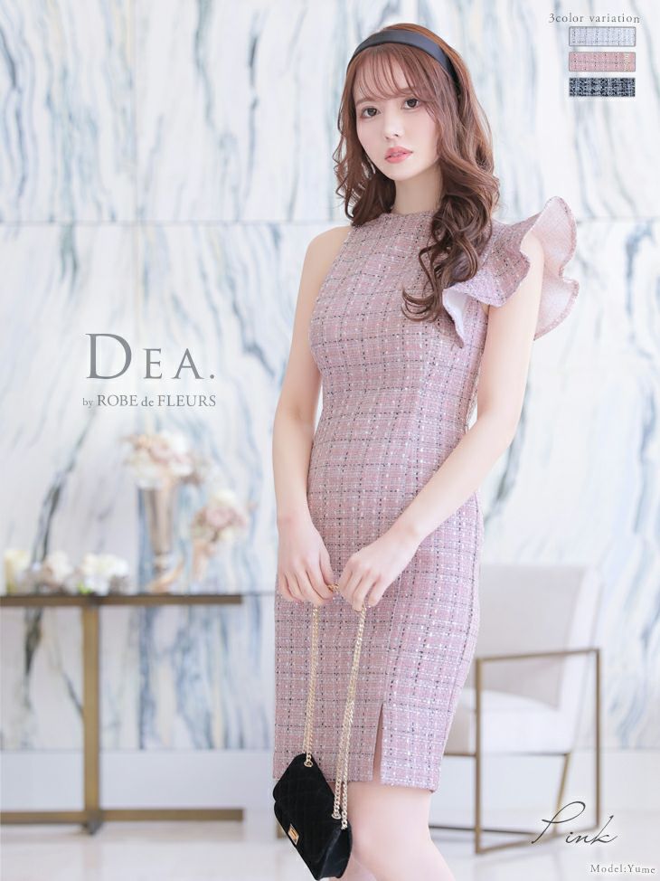 DEA.byROBEdeFLEURS ディアバイローブドフルール 高級ツイード×アシンメトリーノースリーブタイトミニワンピースドレス