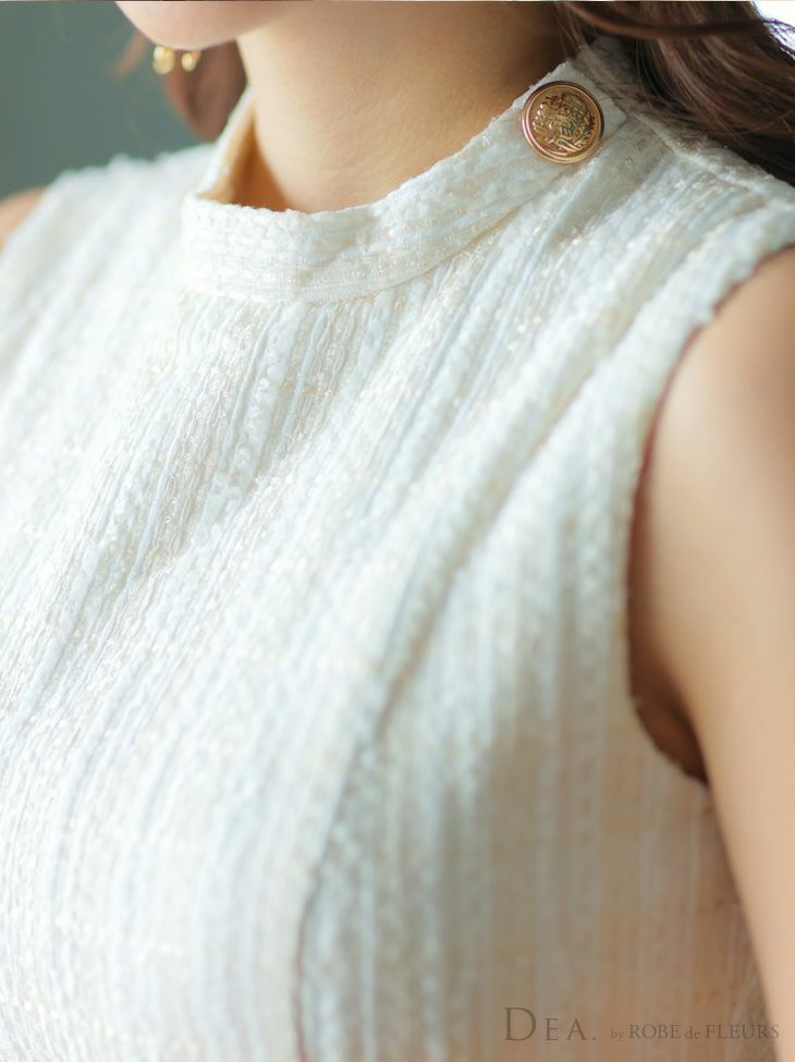 4. [DEA.byROBEdeFLEURS/ディアバイローブドフルール] 高級ラメツイードレースプリーツノースリーブワンピースタイトミニドレス