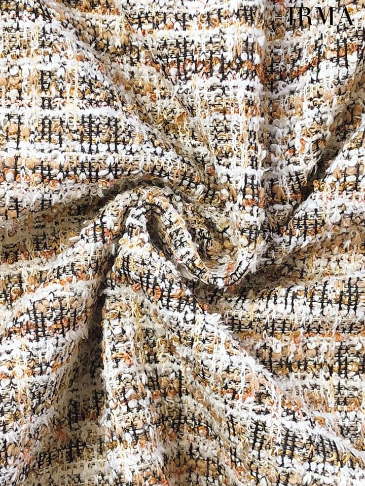 6. [IRMA/イルマ] 高級チェック柄ツイード肩出し 二の腕カバージップウエストカットタイトミニドレス