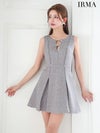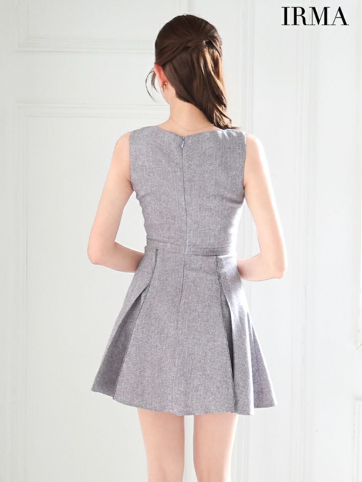 4. [IRMA/イルマ] 高級 ノースリーブ サマーツイード フロントリボン バストカット プリーツ シンプル フレアミニドレス
