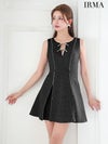 5. [IRMA/イルマ] 高級 ノースリーブ サマーツイード フロントリボン バストカット プリーツ シンプル フレアミニドレス