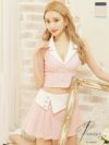 トレンドのツーピース×ツイード☆ [PURESS/ピュアレス] 高級 カラー チェック柄 ボタン 襟付き ノースリーブ ツイード セットアップ フレアミニドレス