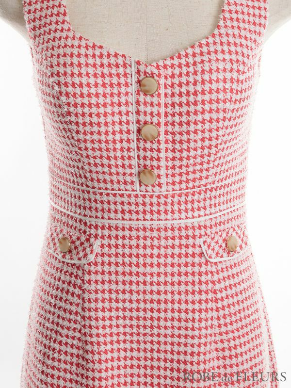 4. SALE [ROBEdeFLEURS/ローブドフルール] 高級千鳥格子柄ラメツイードレトロガーリー風ノースリーブタイトミニドレス