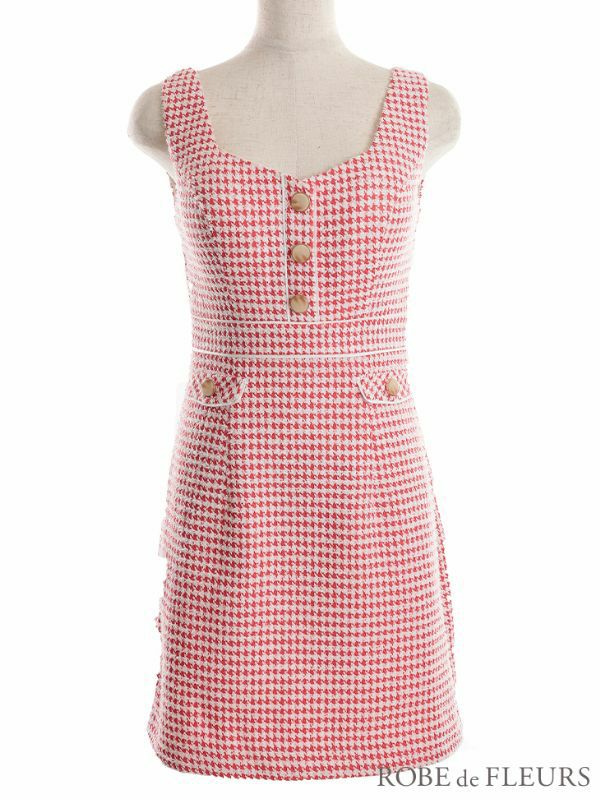 5. SALE [ROBEdeFLEURS/ローブドフルール] 高級千鳥格子柄ラメツイードレトロガーリー風ノースリーブタイトミニドレス