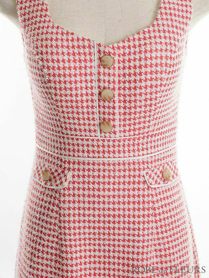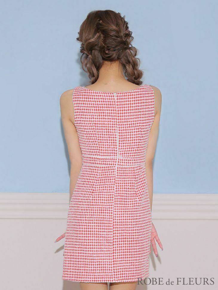 5. SALE [ROBEdeFLEURS/ローブドフルール] 高級ツイードガーリー千鳥格子柄ラメノースリーブタイトミニドレス
