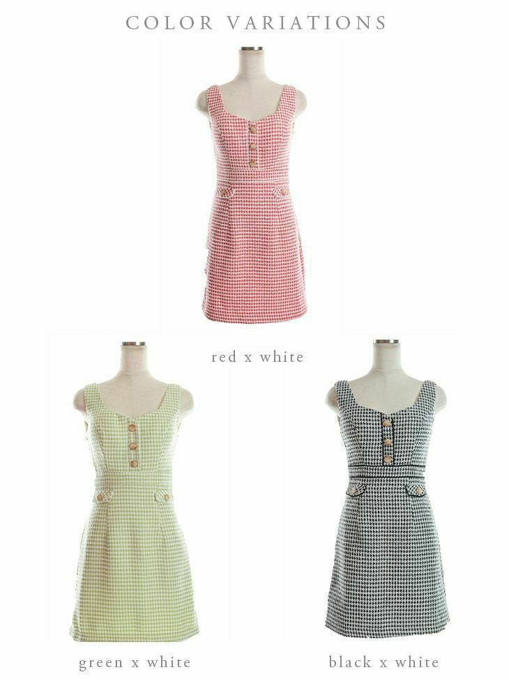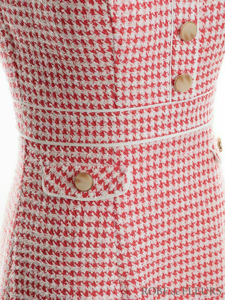 レトロガーリー感。 SALE [ROBEdeFLEURS/ローブドフルール] 高級ツイードガーリー千鳥格子柄ラメノースリーブタイトミニドレス