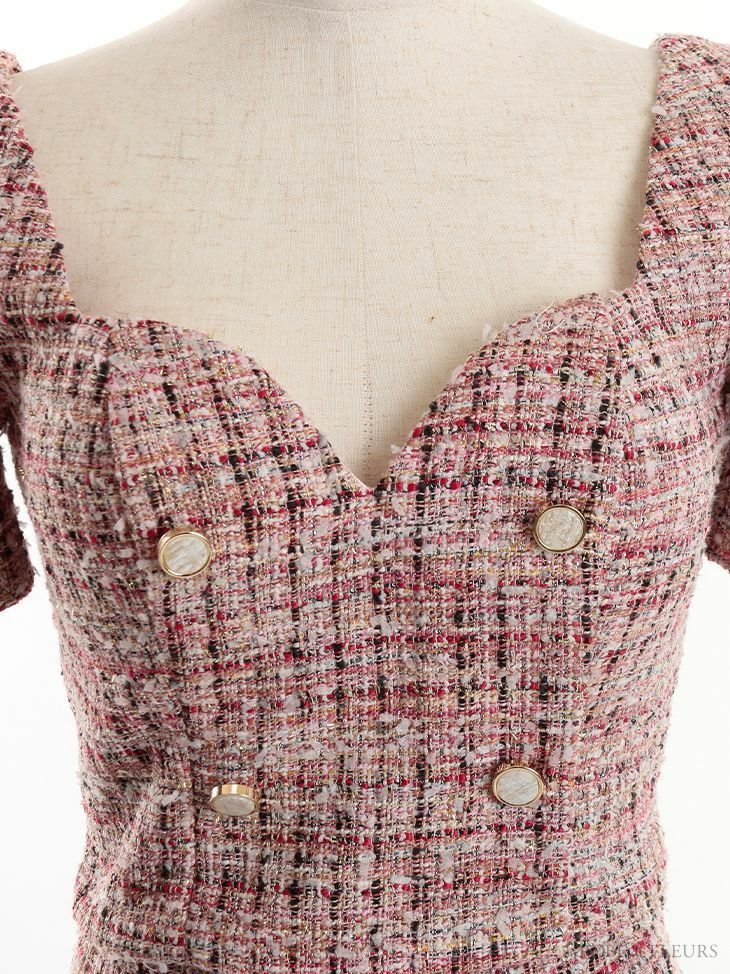 他の画像を見る 気品溢れるフェミニンな2ピース☆ [Angel-R/エンジェルアール] 高級デコルテパールビジューチェック柄パフスリーブ半袖セットアップツイードマイクロタイトミニドレス ¥ 31,680 税込 在庫切れ お気に入りに追加