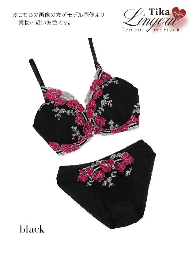 3. [勝負下着] ビビットフラワー刺繍エレガンスブラジャー&ショーツ2点セット