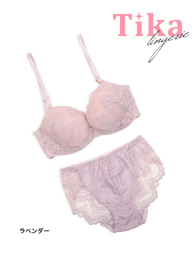 ヌーディーエレガントスカラップレースカップブラジャー&ショーツ2点セットの詳細画像