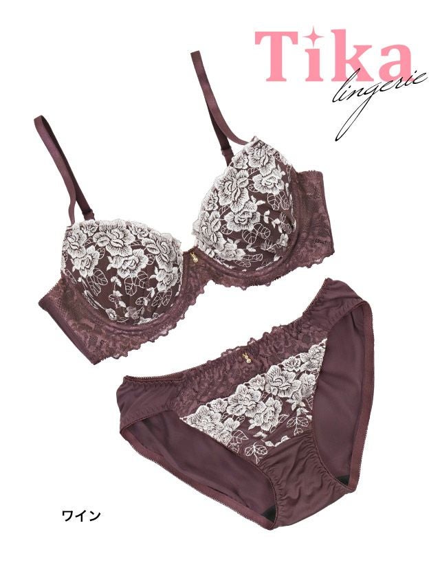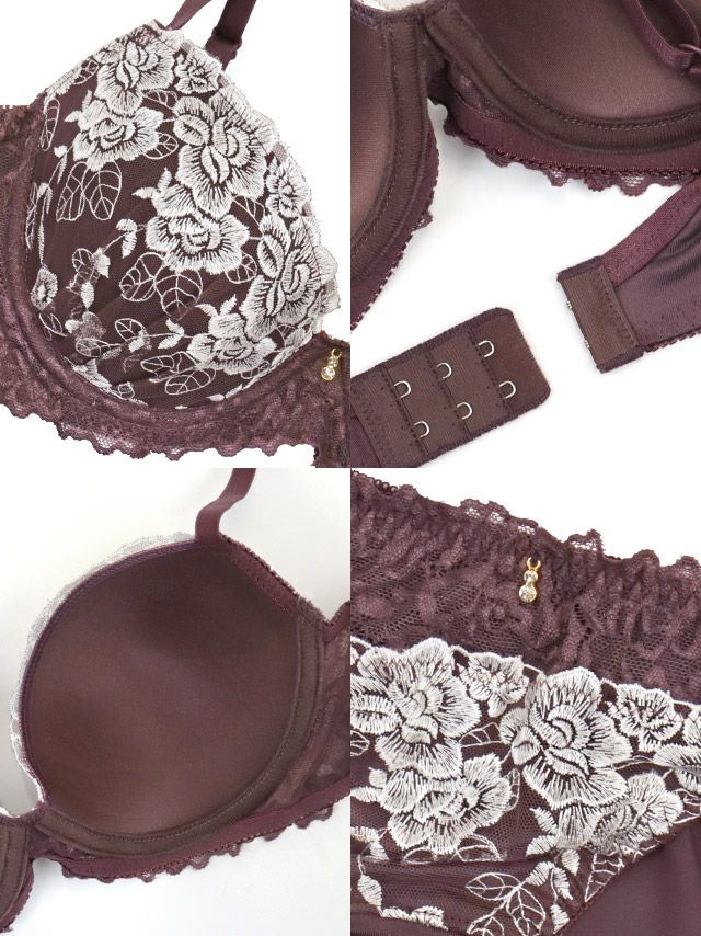 ホワイトフラワー刺繍脇高カップブラジャー&ショーツ2点セットの詳細画像