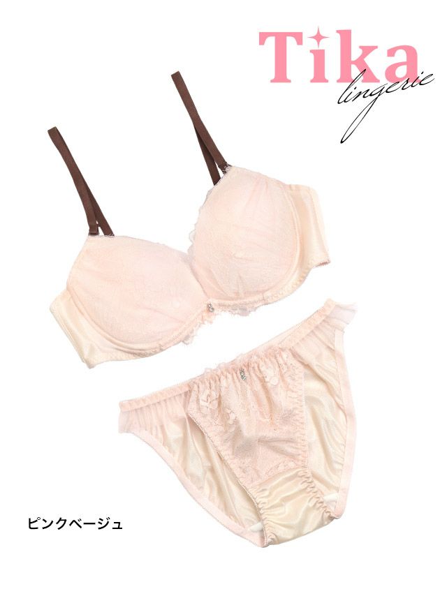 透明感を引き立てる♪ [勝負下着] ビジューチャーム付きレイヤードレースチュール脇高フルカップブラジャー&ショーツ2点セット