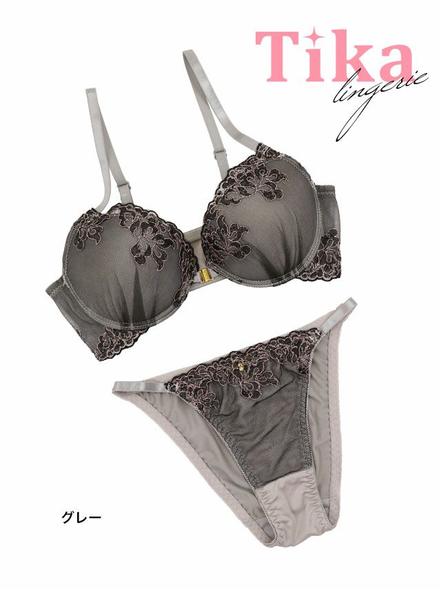 大人可愛いオシャレランジェリー♪ [勝負下着] クラシックフラワー刺繍フロントホック脇高カップブラジャー&ショーツ2点セット