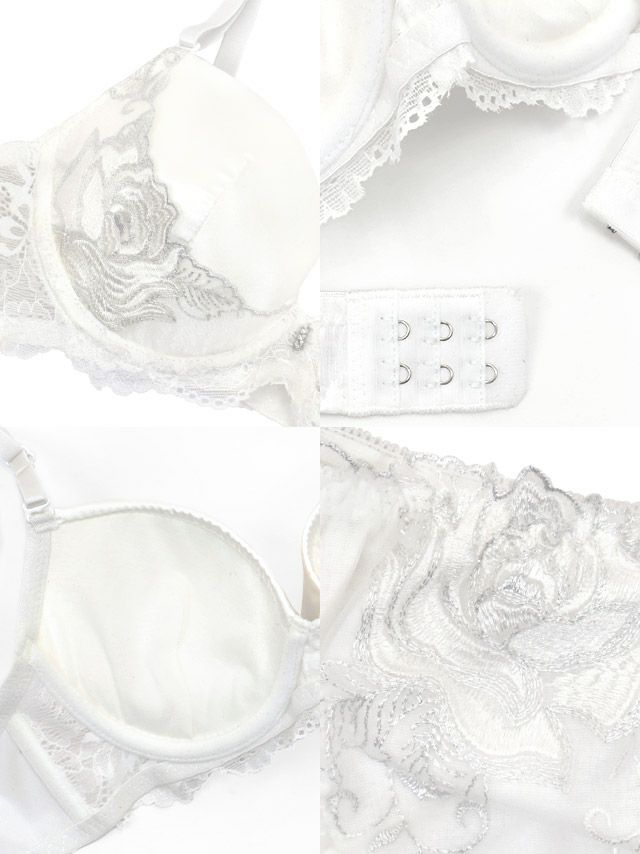 ピュアな純白ランジェリー♪ [勝負下着] エレガントフラワー刺繍レースサテンカップブラジャー&ショーツ2点セット
