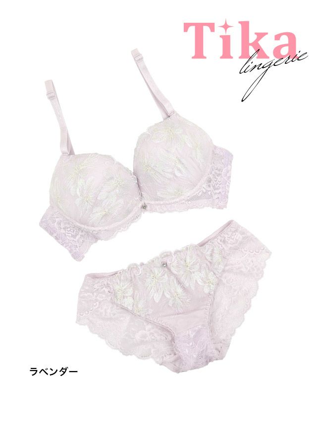 ホワイトリリーレースカップブラジャー&ショーツ2点セットの詳細画像