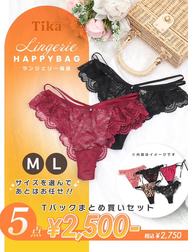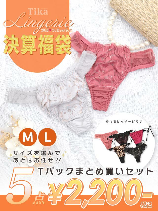 サイズを選んで商品はスタッフにお任せ♪ [福袋] TIKAランジェリーTバック単品ショーツ5点セット