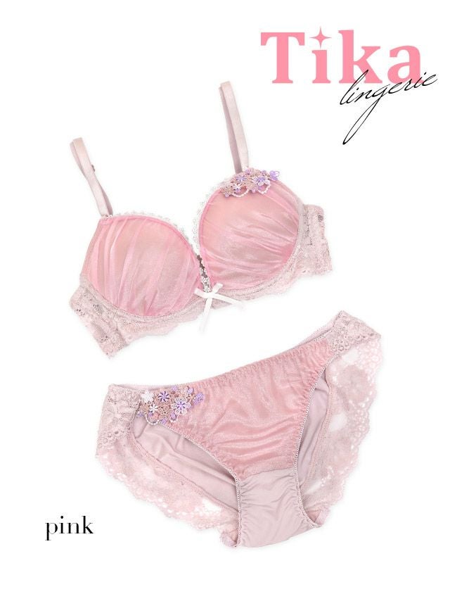 ケミカルレースオーガンジーカップブラジャー&ショーツ2点セットのカラー