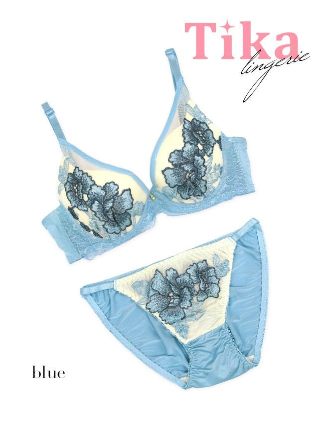 エレガントフラワー刺繍カップブラジャー&ショーツ2点セットのカラー