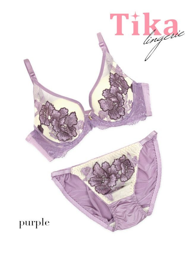 3. [勝負下着] エレガントフラワー刺繍カップブラジャー&ショーツ2点セット