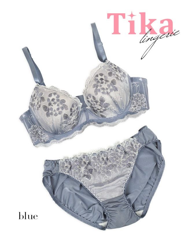 シアーフラワー刺繍カップブラジャー&ショーツ2点セットの詳細画像1