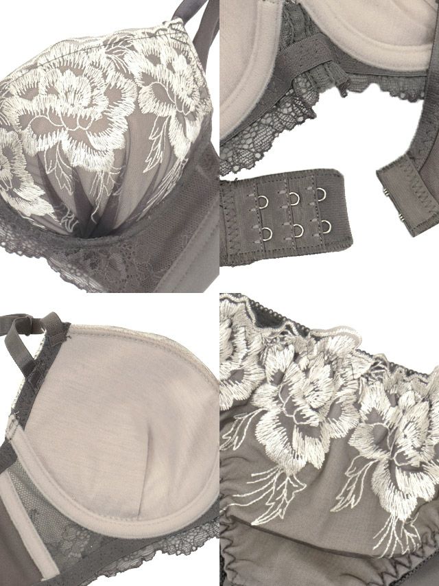 4. [勝負下着] レイヤードチュールエレガントフラワー刺繍ビジューカップブラジャー&ショーツ2点セット